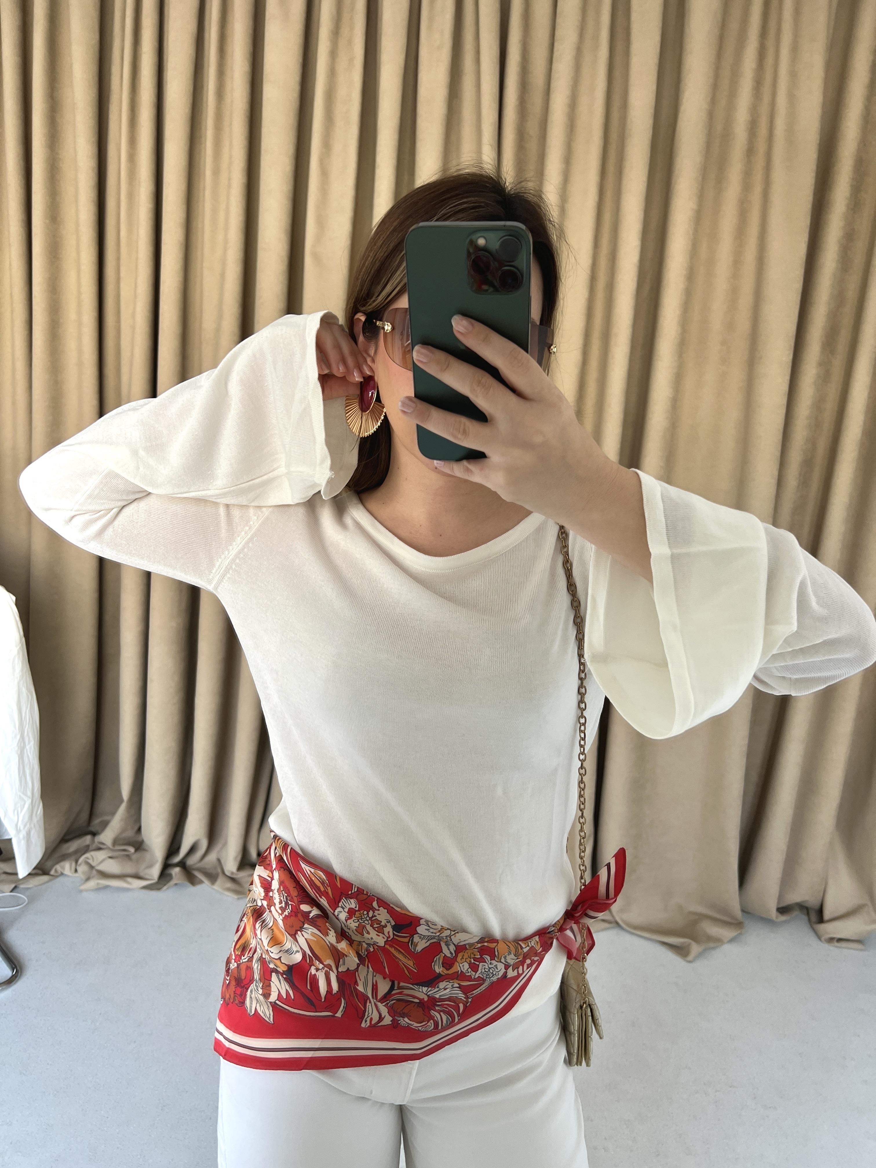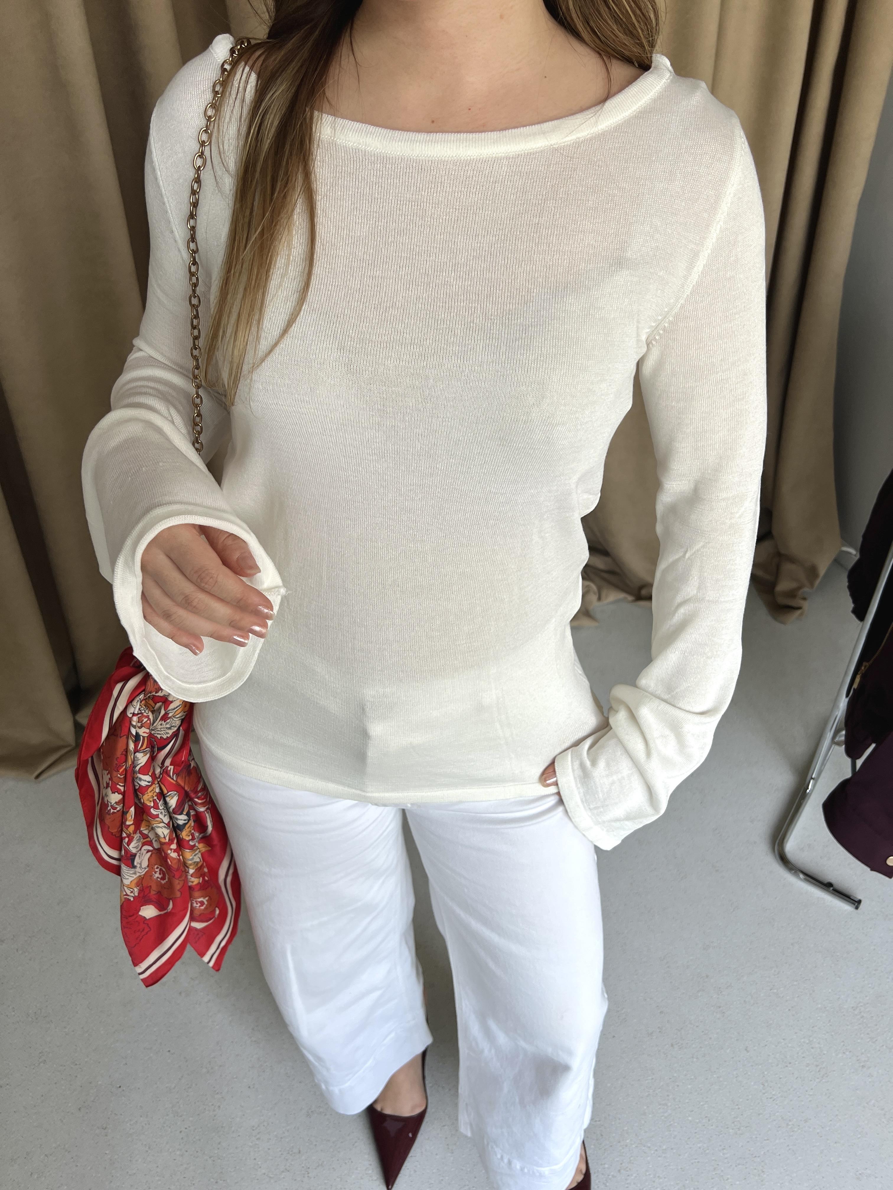Beyaz Sırt Dekolteli İspanyol Kol Bluz